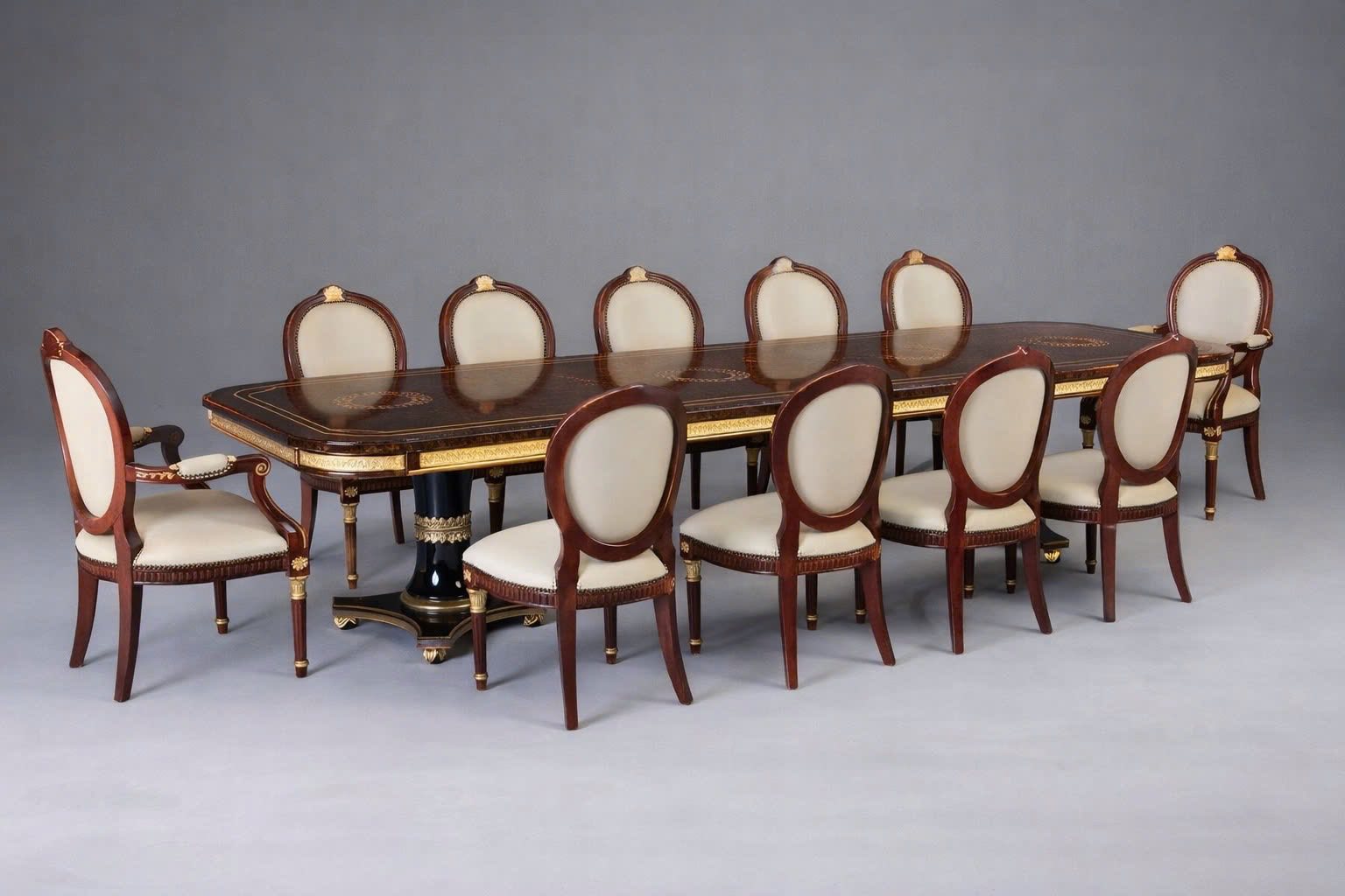 Bộ bàn ăn Mariner 3m4 kèm 10 ghế Louis – Nội thất Minh Sang