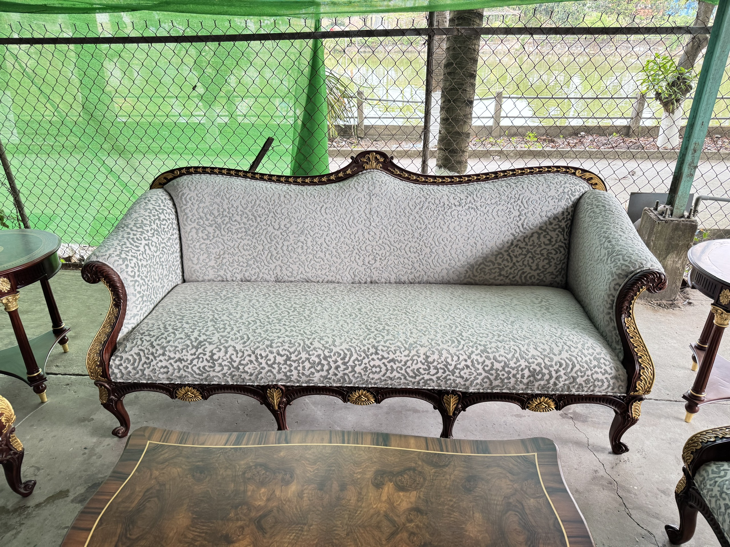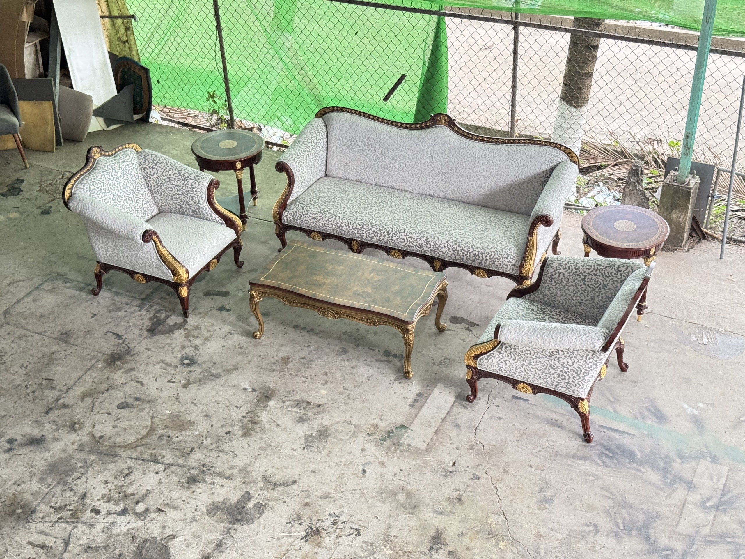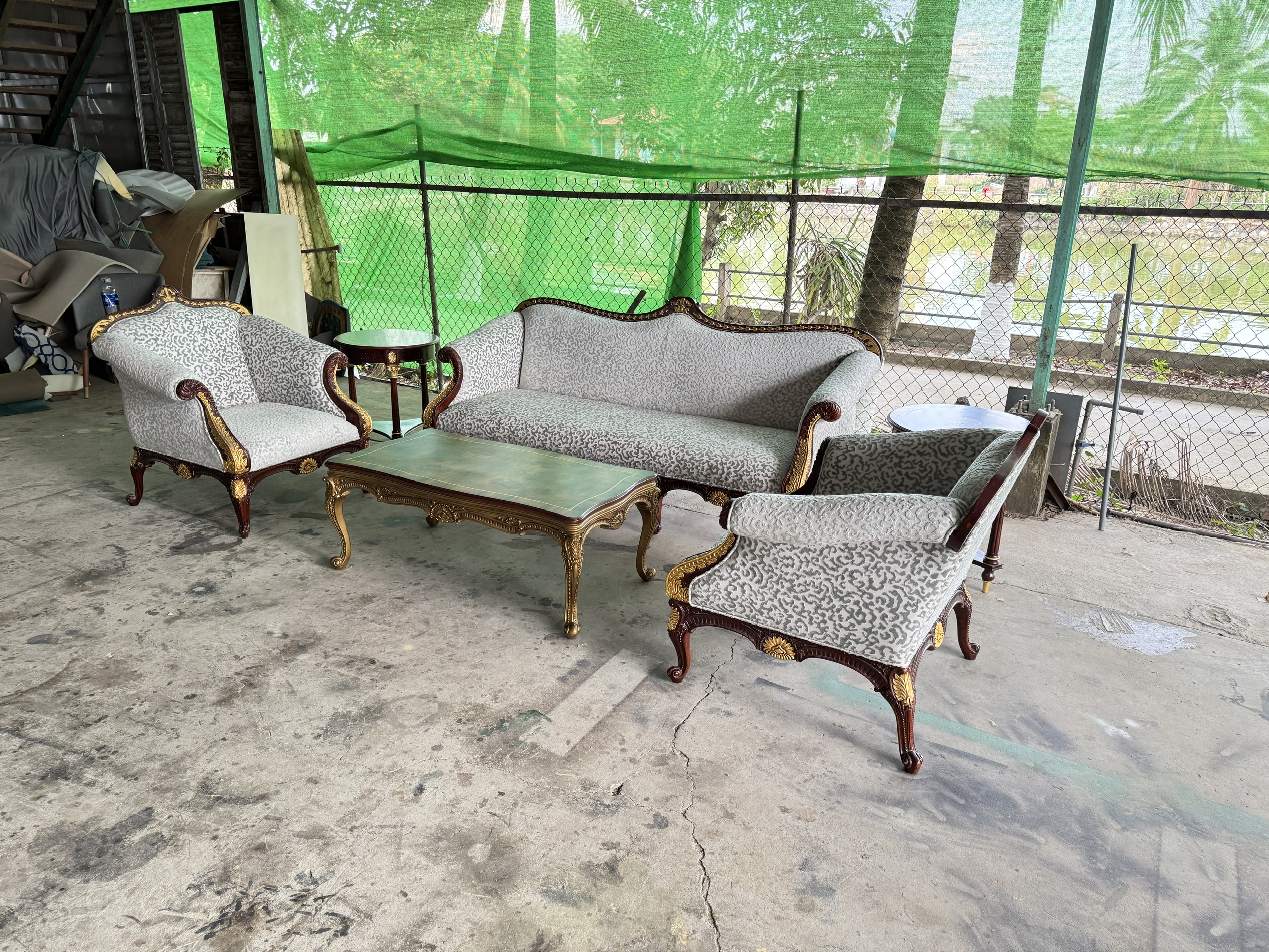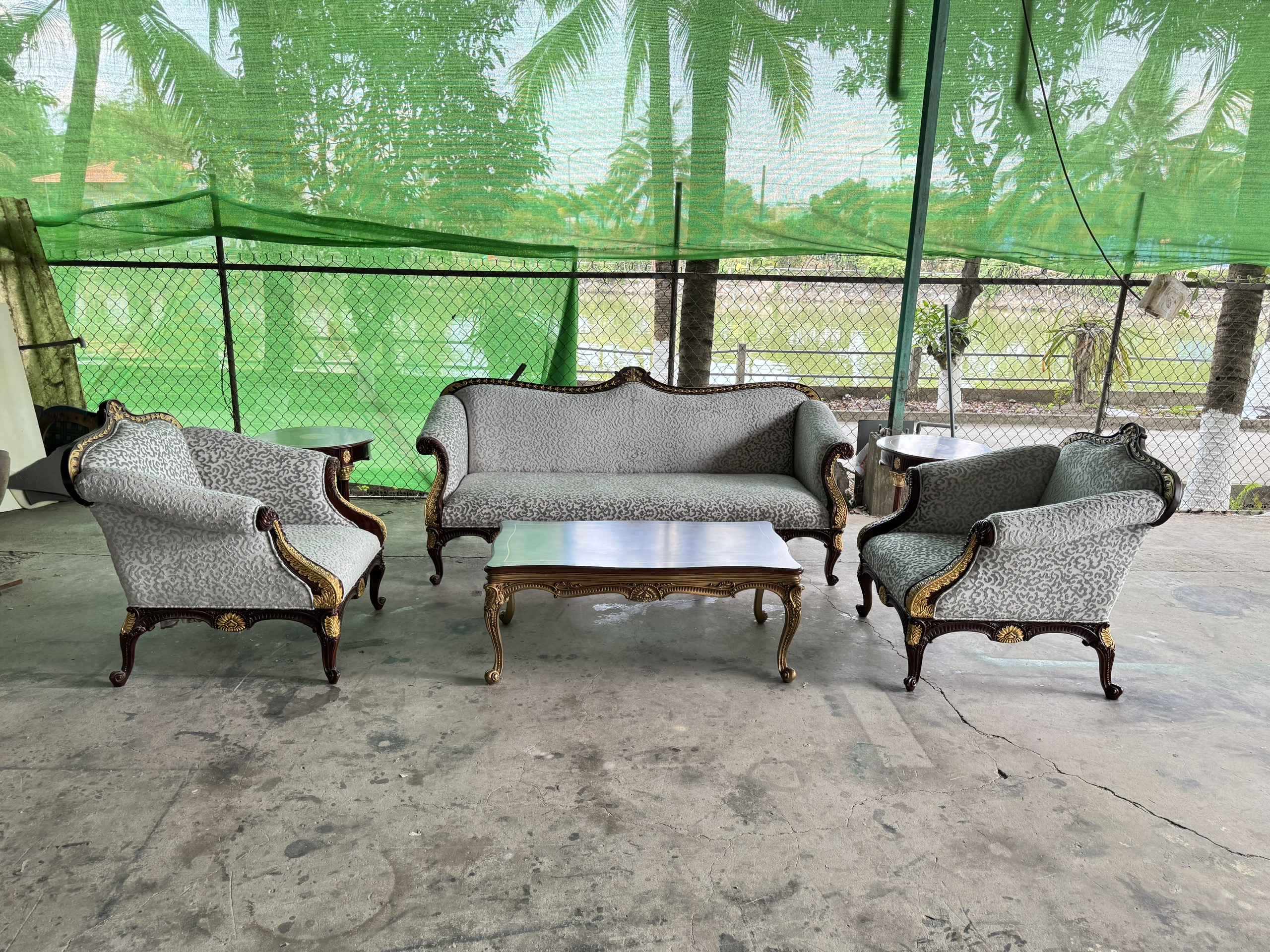 Điểm nổi bật của bộ sofa này nằm ở thiết kế lâu đài đặc trưng với những đường cong mềm mại, tinh tế. Các chi tiết được chạm khắc tỉ mỉ, tạo nên vẻ đẹp cầu kỳ nhưng không rối mắt. Từng đường nét đều được chăm chút kỹ lưỡng, giúp tổng thể sản phẩm toát lên sự bề thế và sang trọng.