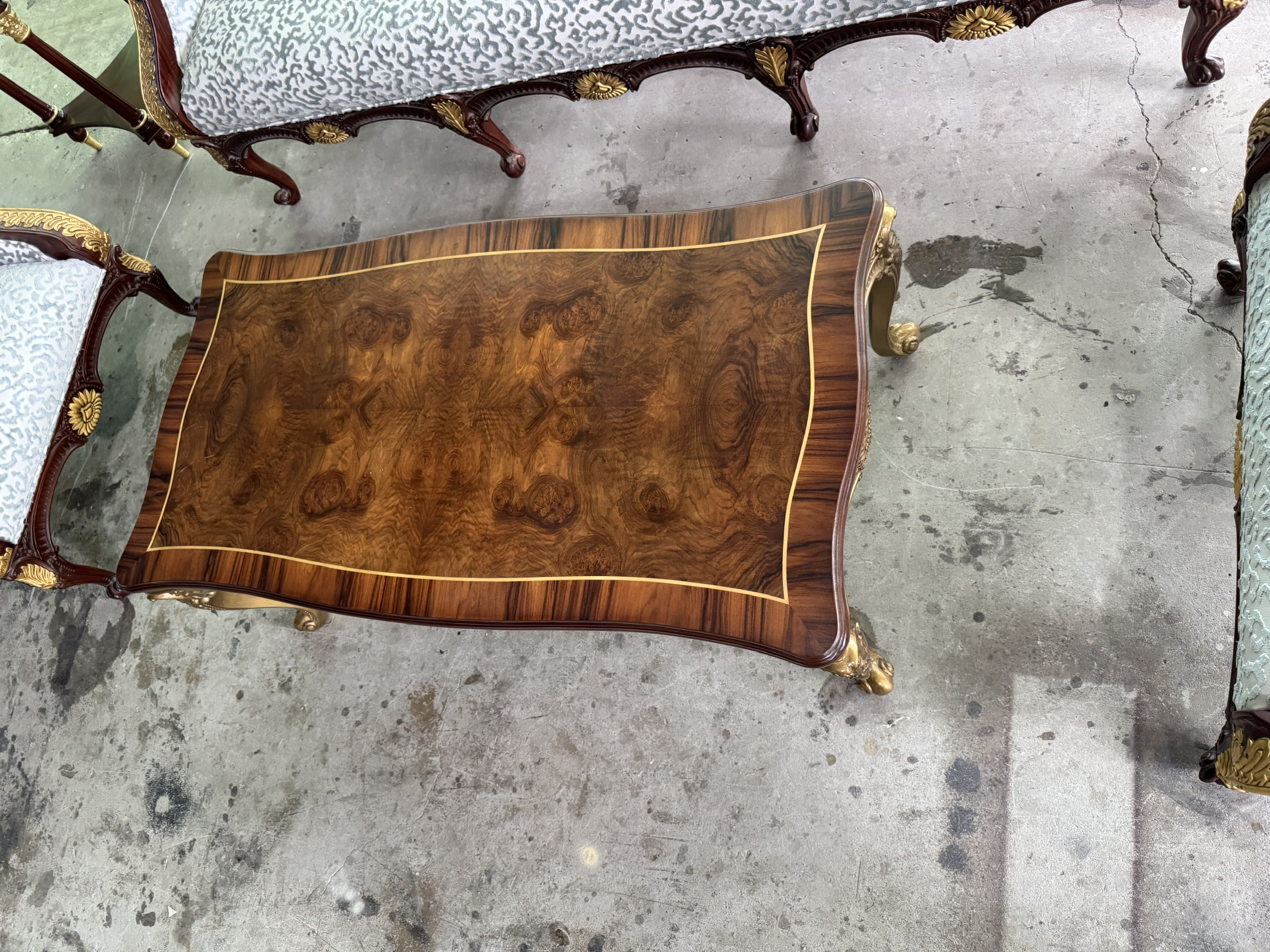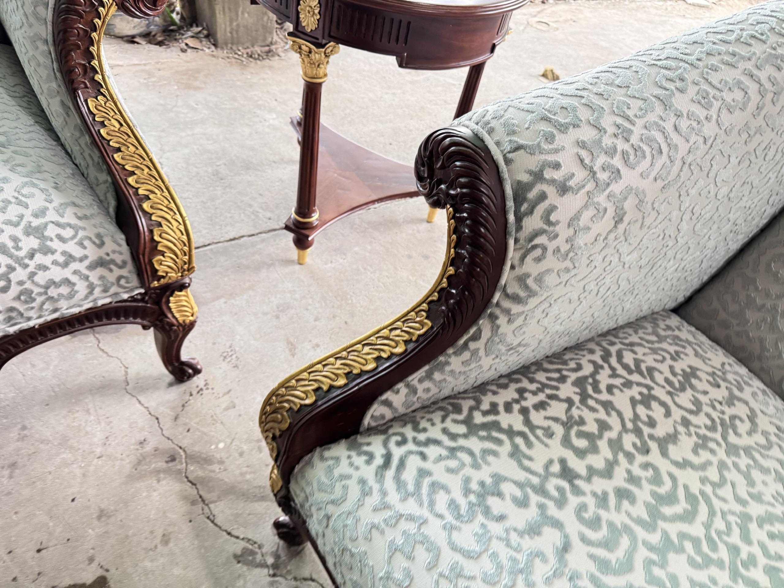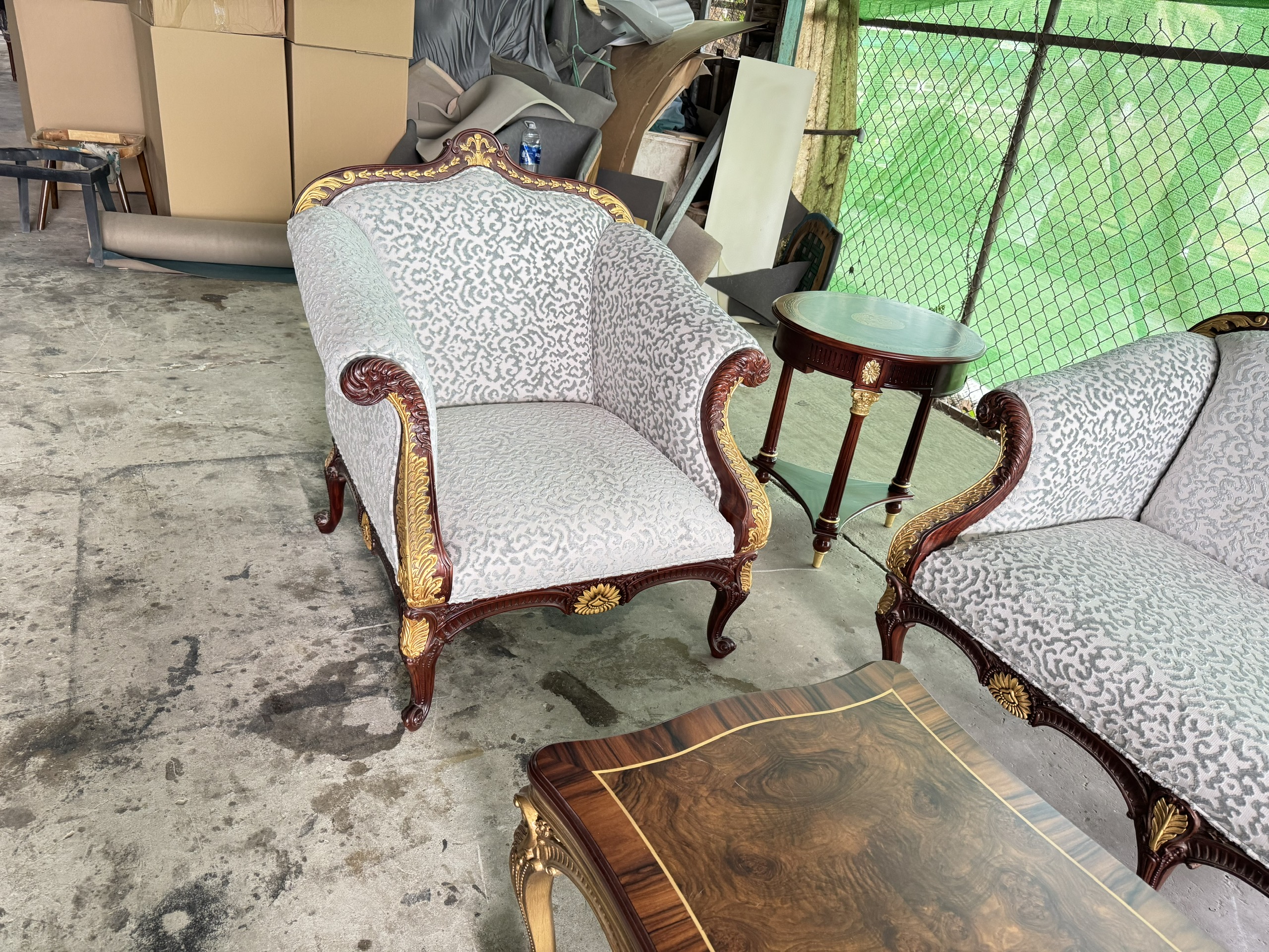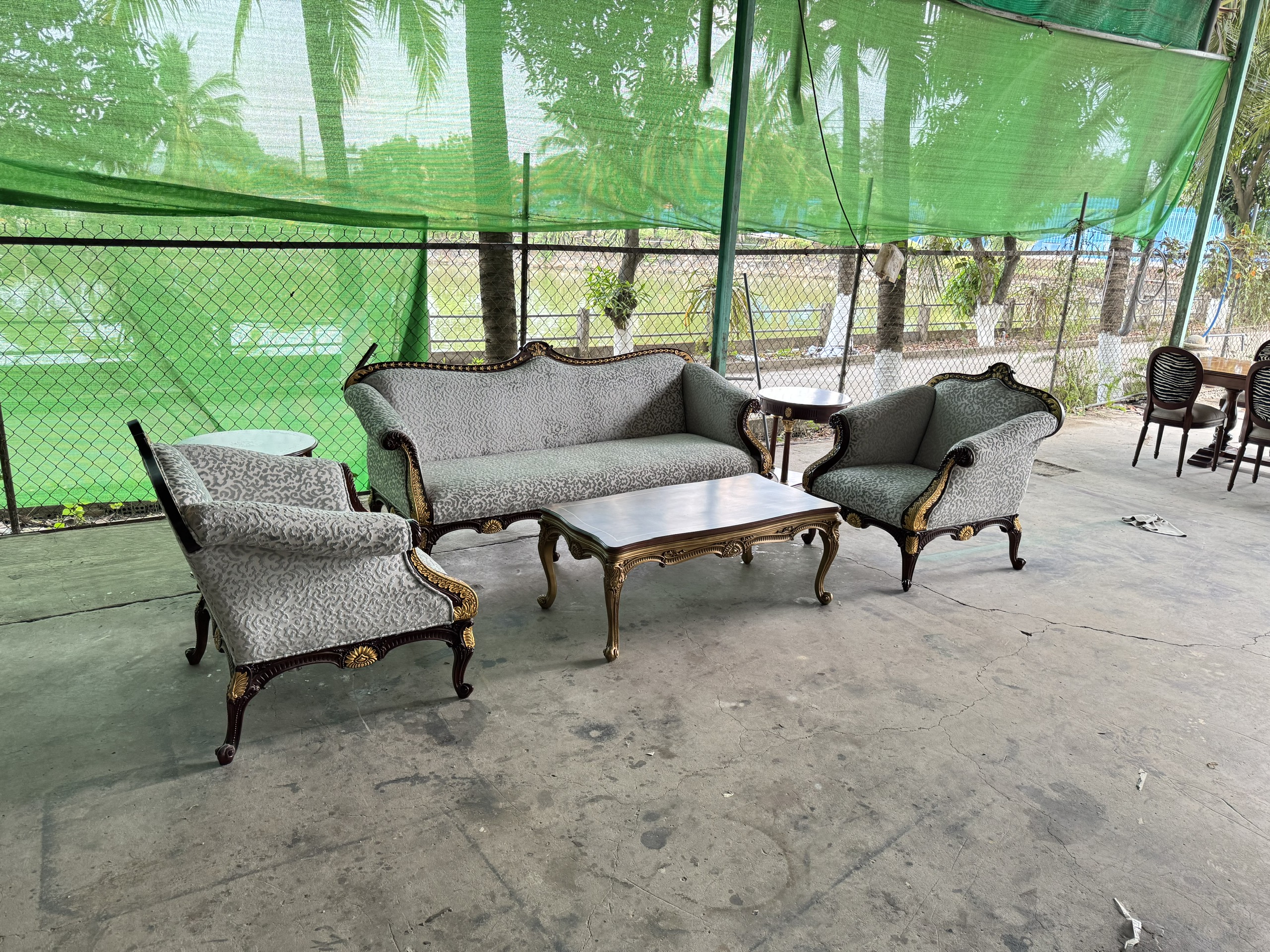 Điểm nổi bật của bộ sofa này nằm ở thiết kế lâu đài đặc trưng với những đường cong mềm mại, tinh tế. Các chi tiết được chạm khắc tỉ mỉ, tạo nên vẻ đẹp cầu kỳ nhưng không rối mắt. Từng đường nét đều được chăm chút kỹ lưỡng, giúp tổng thể sản phẩm toát lên sự bề thế và sang trọng.