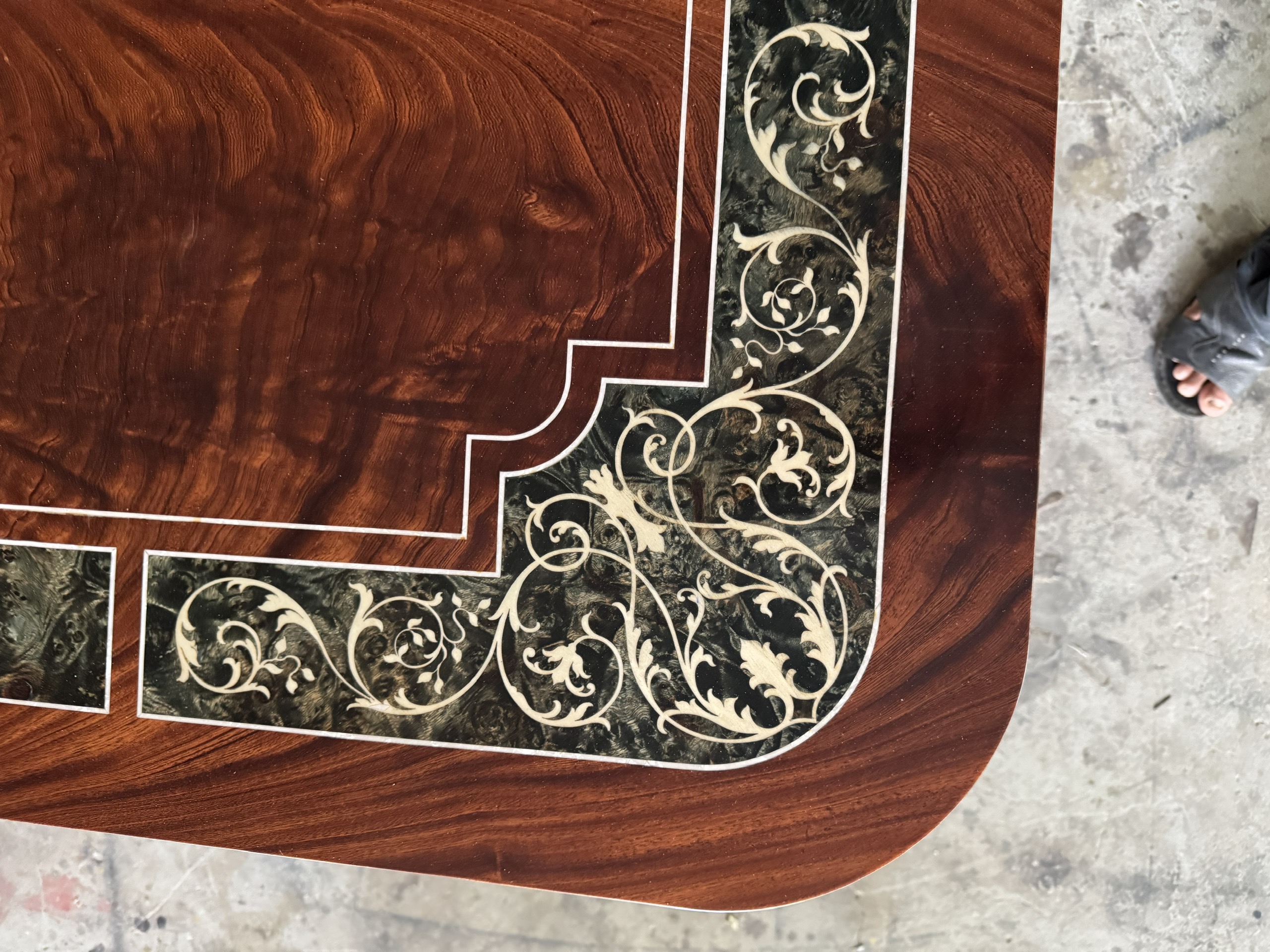 Về chất liệu, bàn ăn được chế tác từ gỗ tự nhiên cao cấp, đảm bảo độ bền chắc và khả năng chịu lực tốt. Bề mặt bàn có thể được hoàn thiện bằng sơn cao cấp hoặc kết hợp các chi tiết trang trí tinh tế, giúp tăng thêm vẻ đẹp sang trọng. Ghế louis cũng sử dụng khung gỗ chắc chắn, kết hợp đệm ngồi êm ái, bọc da hoặc vải cao cấp, mang lại trải nghiệm sử dụng thoải mái và bền bỉ theo thời gian.