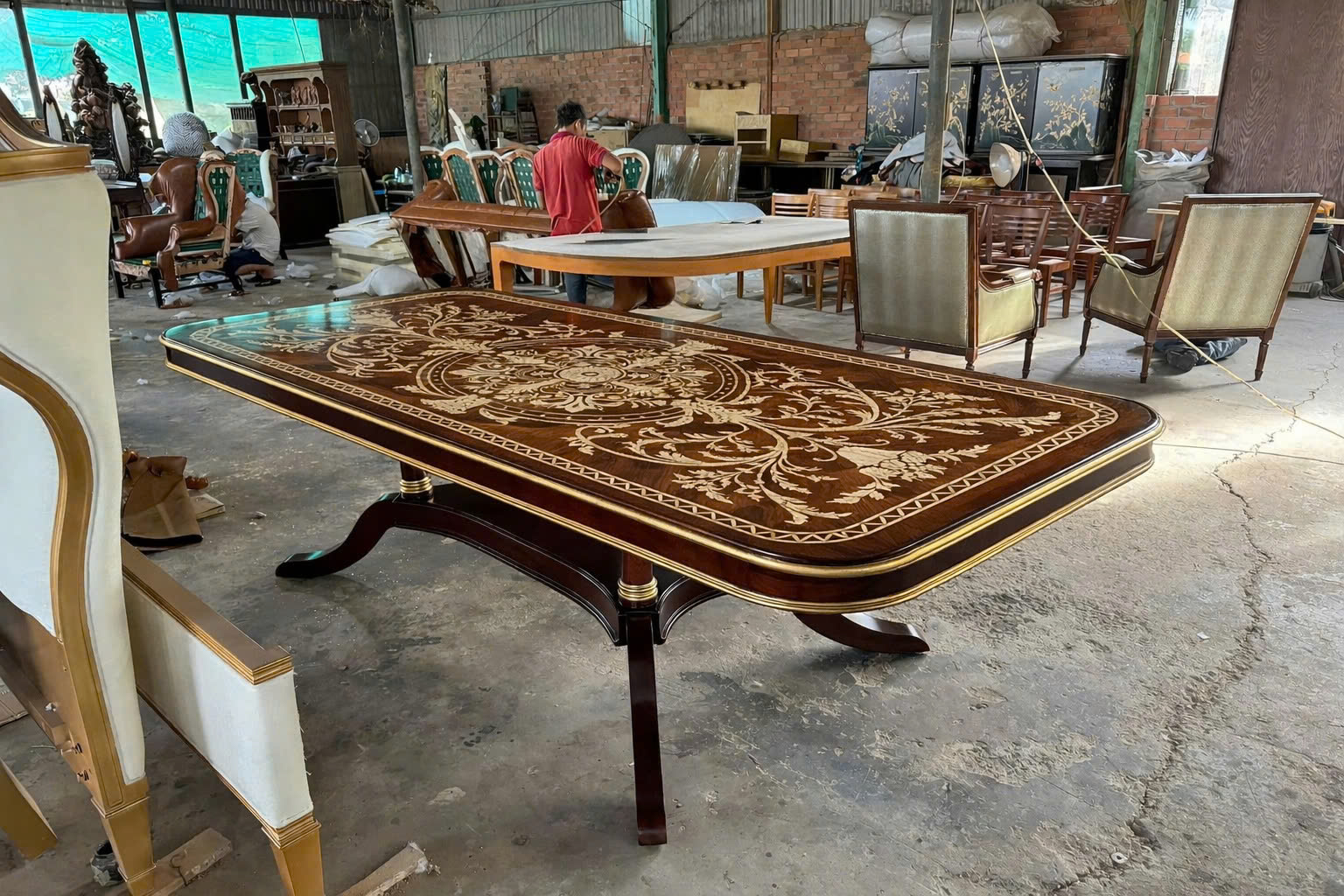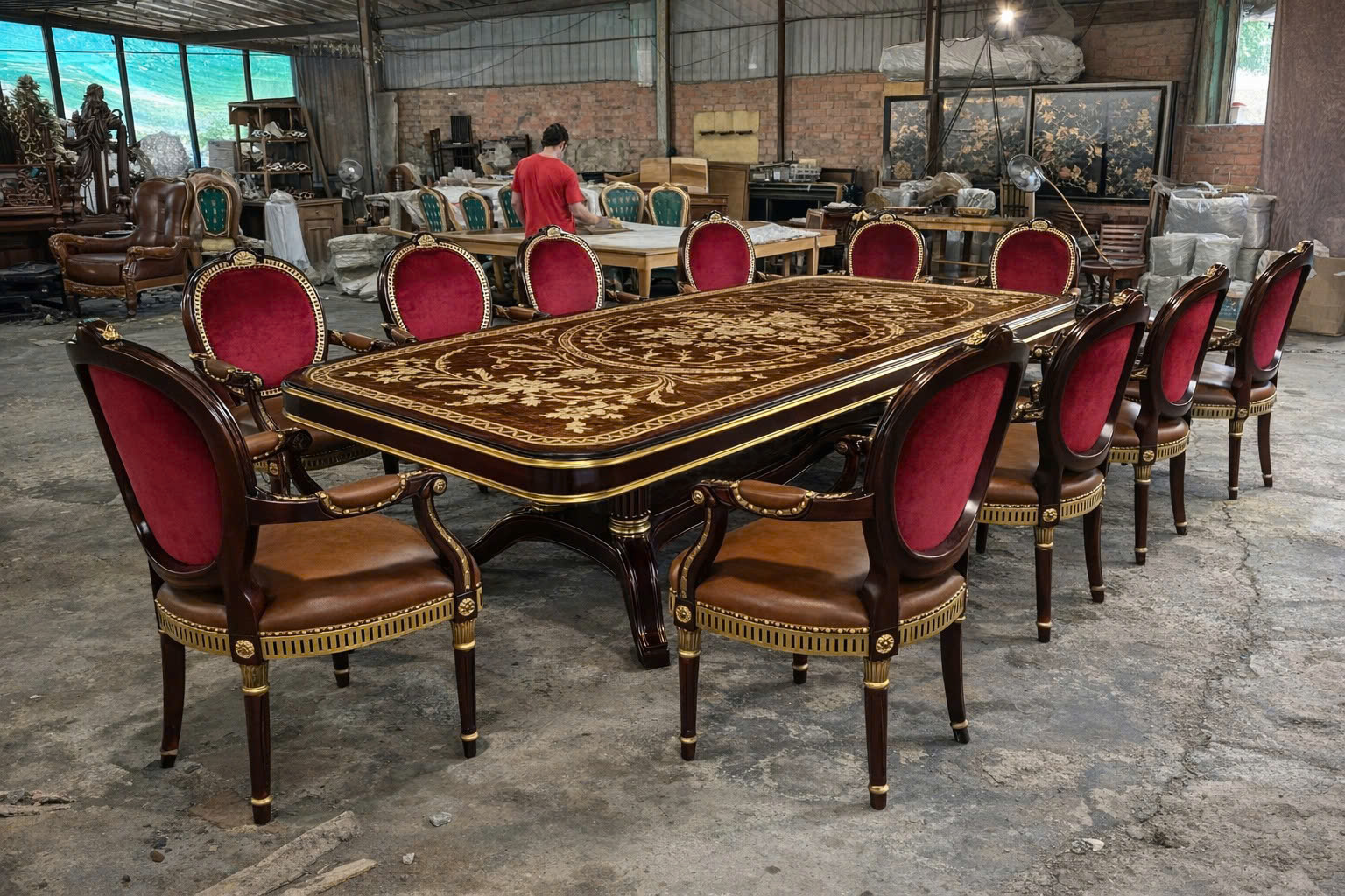 Sự kết hợp giữa bàn ăn 2m8 và 10 ghế Louis 16 tạo nên một tổng thể hài hòa, sang trọng và tiện nghi. Màu sắc và kiểu dáng được lựa chọn kỹ lưỡng, giúp bộ bàn ăn dễ dàng phù hợp với nhiều phong cách nội thất, đặc biệt là cổ điển và tân cổ điển.