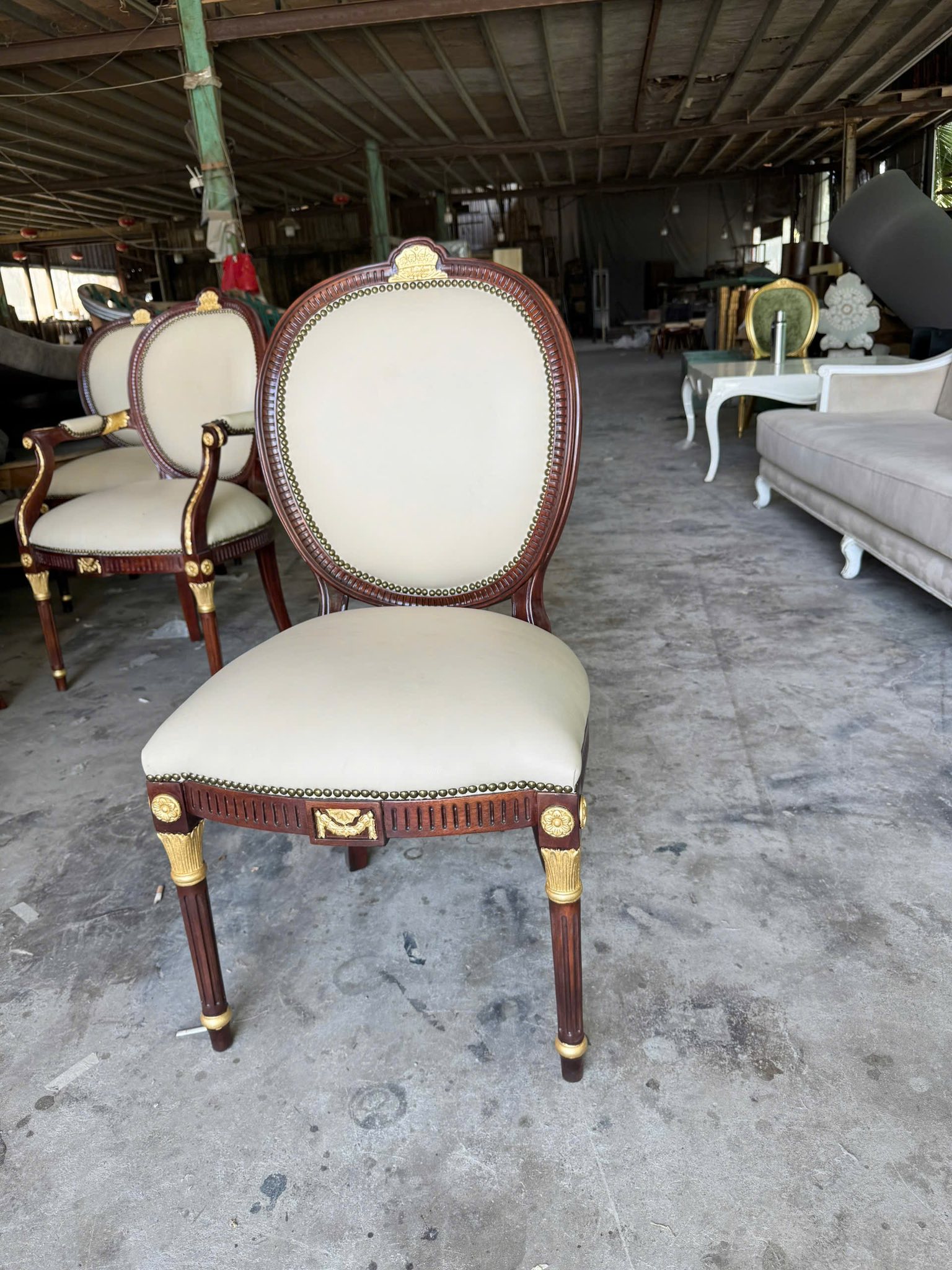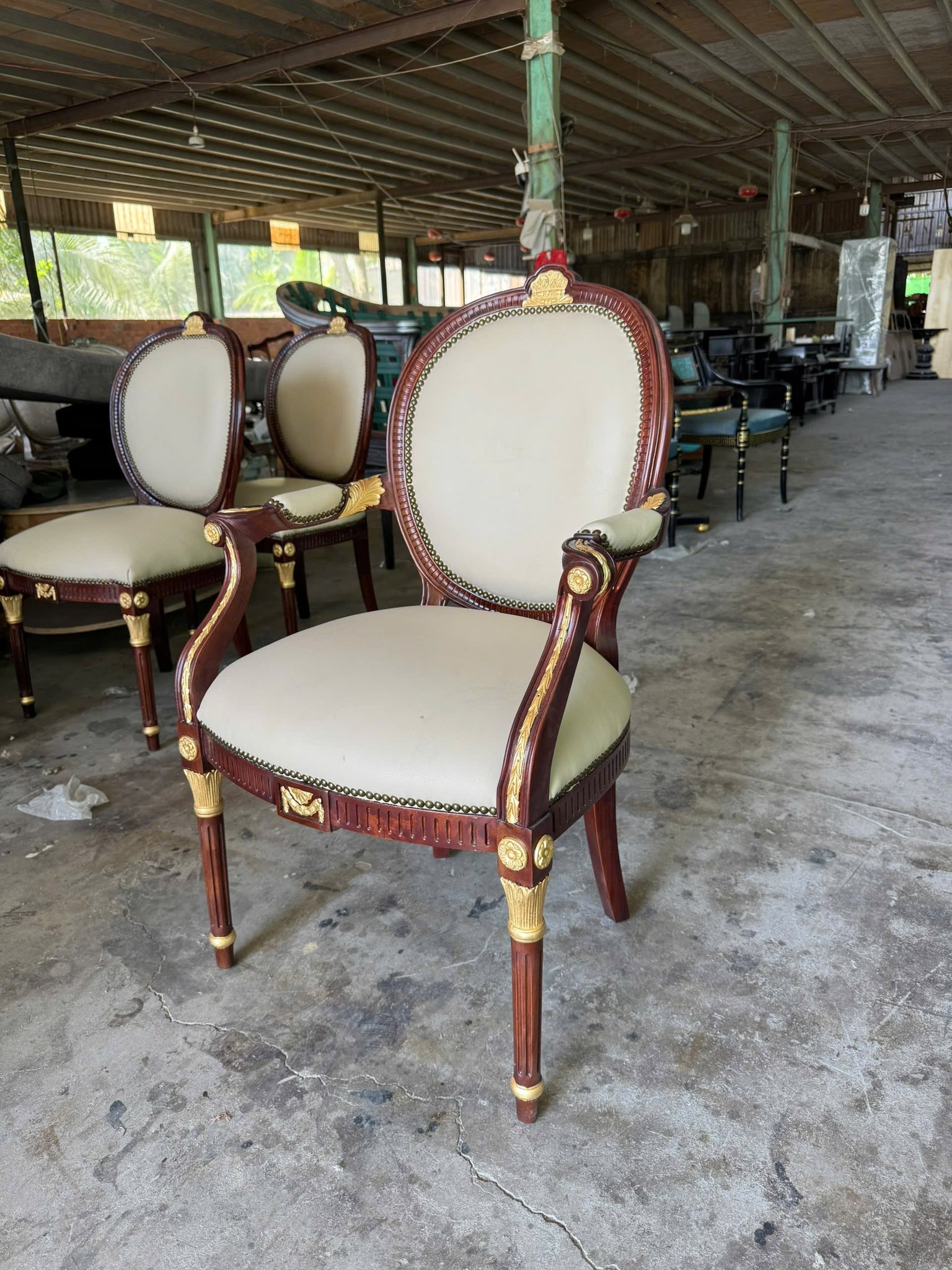 Bộ bàn ăn cổ điển kết hợp từ màu tự nhiên của gỗ và lá vàng lá bạc hài hoà, sang trọng lắm ạ.