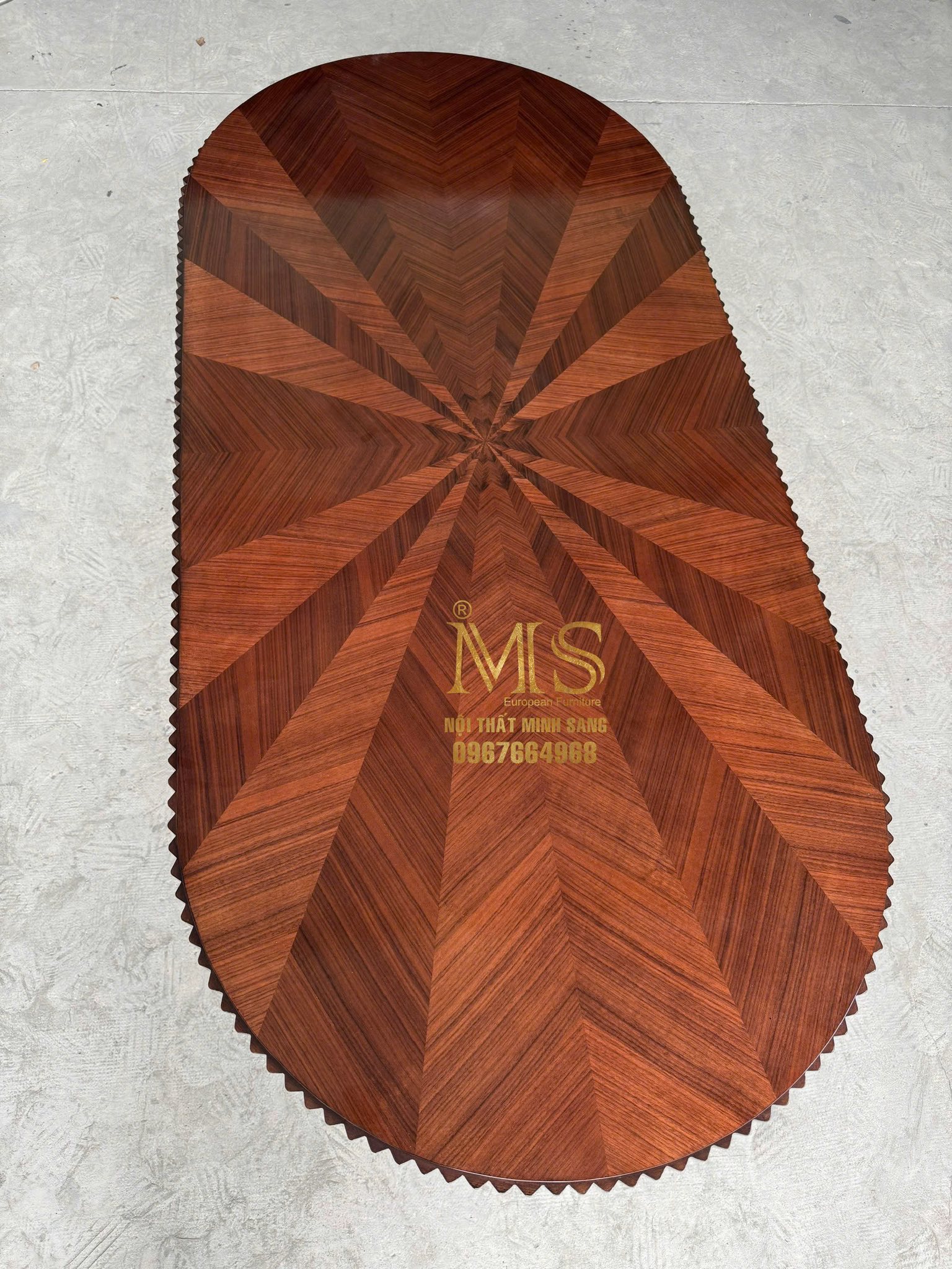 Chi tiết mặt bàn veneer sắp xếp hướng tâm tinh tế