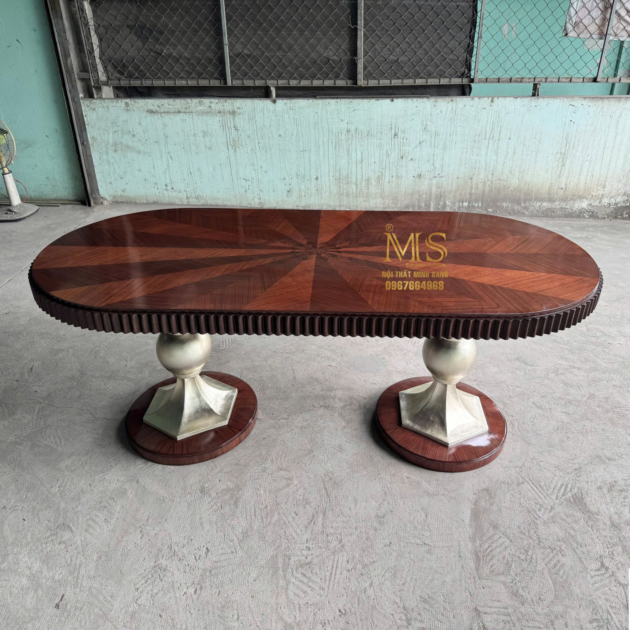 Bàn ăn veneer hướng tâm chân dát bạc Nội thất Minh Sang