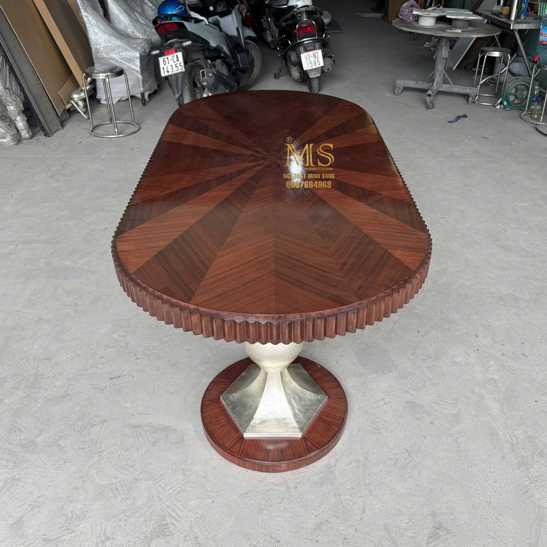 Bàn ăn veneer hướng tâm chân dát bạc - Nội thất Minh Sang