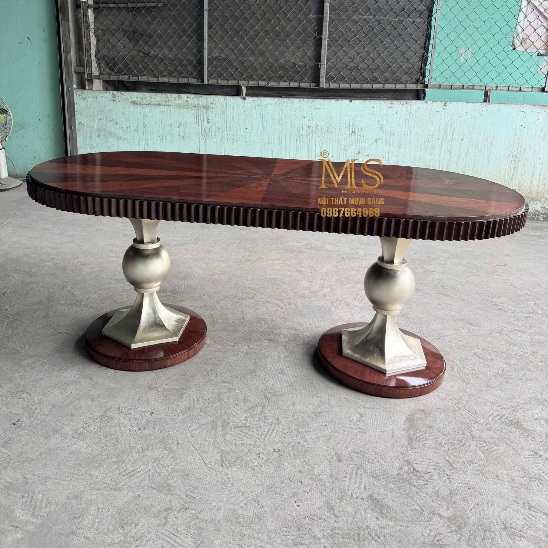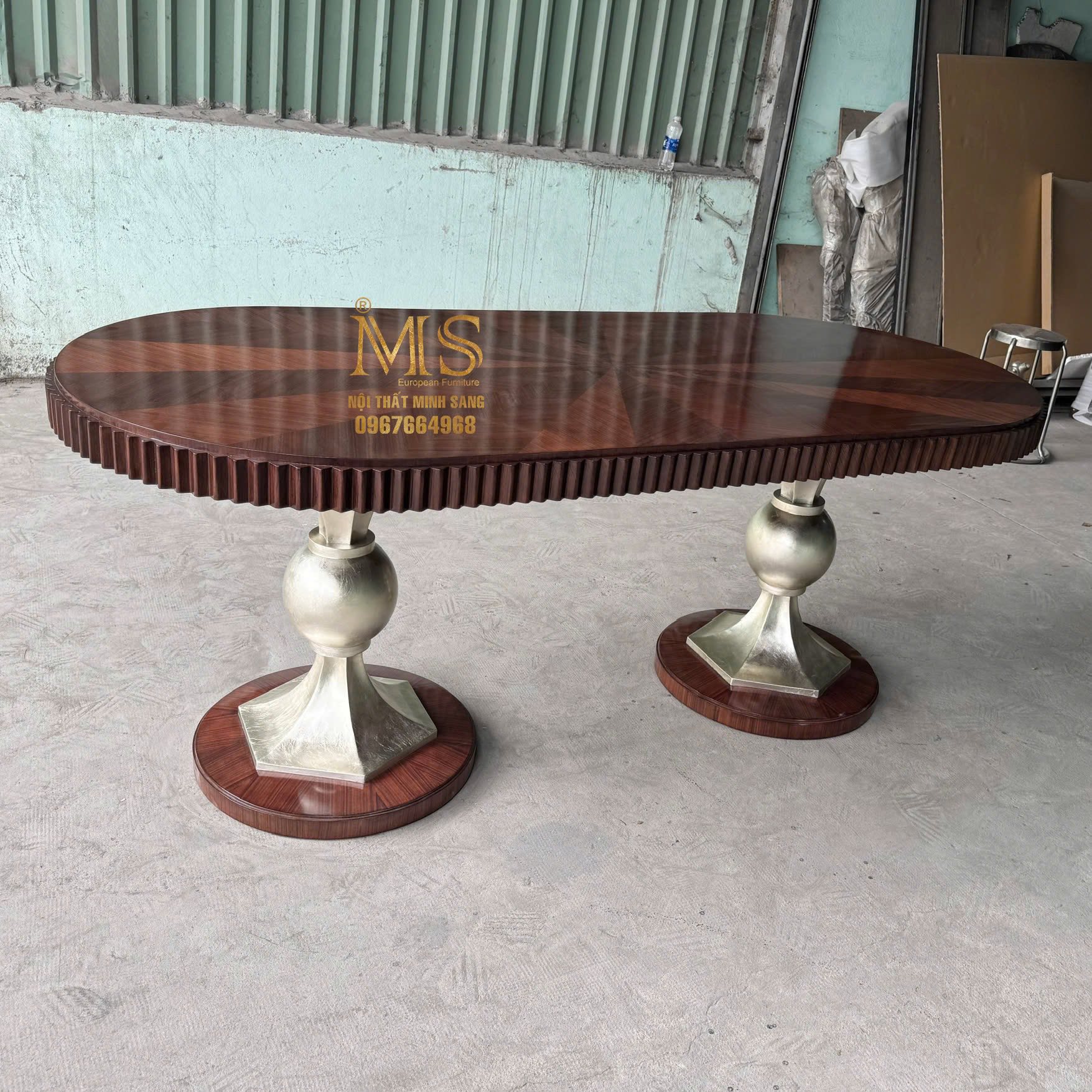 Bàn ăn veneer hướng tâm chân dát bạc vẻ đẹp tinh tế cho không gian sum vầy - Nội thất Minh Sang