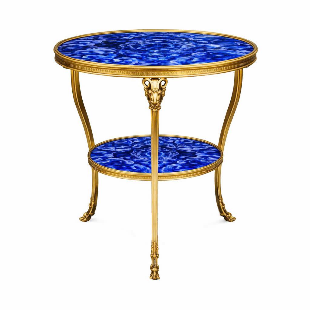 Sự kết hợp giữa khung đồng đúc và mặt vẽ giả đá tạo nên tổng thể hài hòa, vừa mạnh mẽ vừa mềm mại. Tông màu xanh của malachite giúp cân bằng sắc ánh kim của đồng, mang lại cảm giác sang trọng mà không quá nặng nề. Đây là yếu tố giúp chiếc bàn dễ dàng trở thành điểm nhấn nổi bật trong không gian.