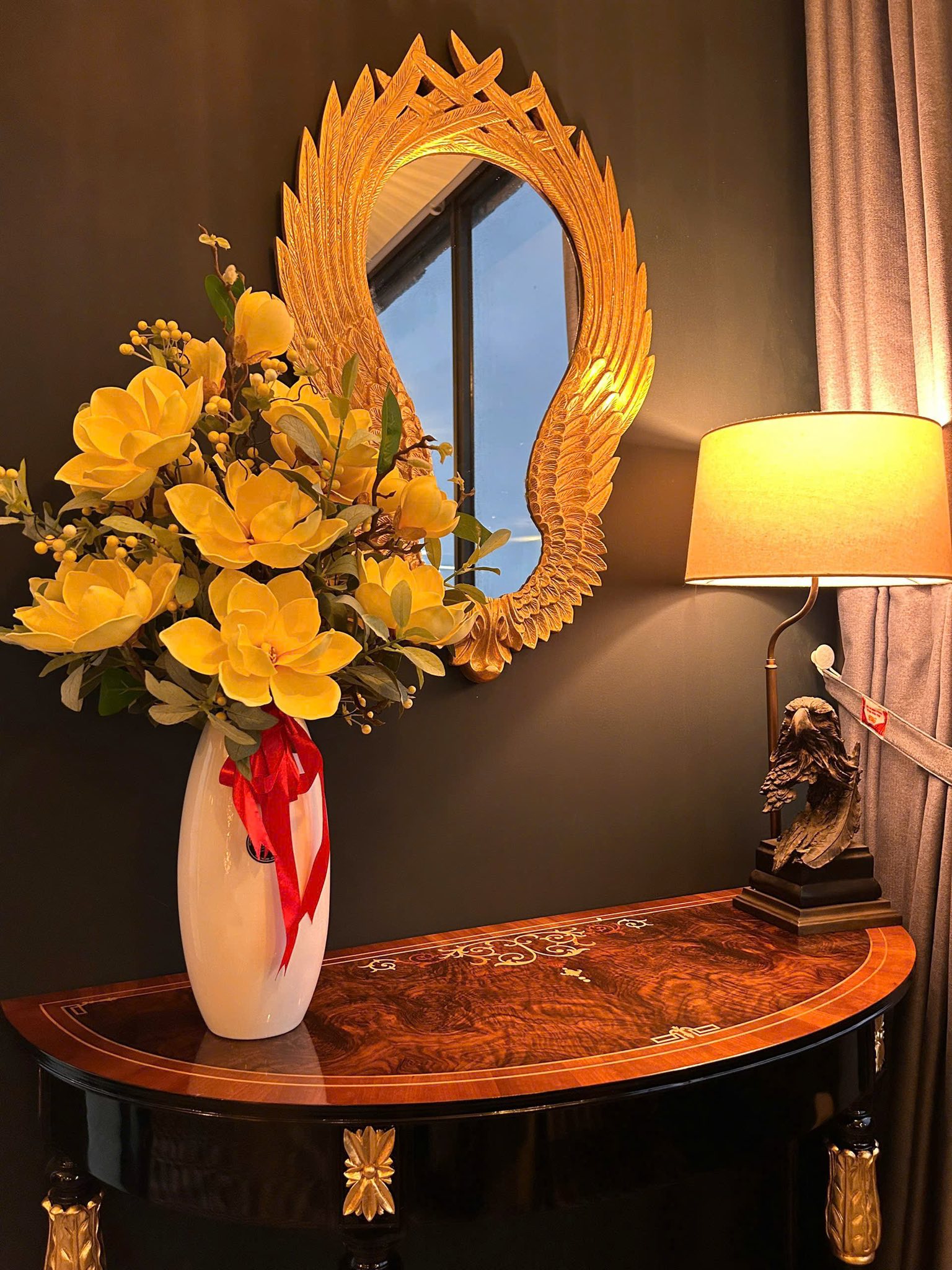 Sở hữu bàn console bán nguyệt sơn đen mặt veneer, không gian sống trở nên hoàn thiện và có chiều sâu hơn. Đây không chỉ là một món đồ nội thất trang trí mà còn thể hiện gu thẩm mỹ nhẹ nhàng, tinh tế của gia chủ.