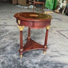 Bàn màu walnut ốp đồng bọc da bò