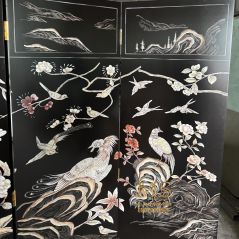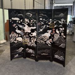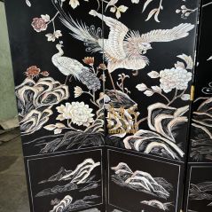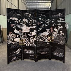 Bình phong 04 tấm vẽ hạc trên nền vải bố đen