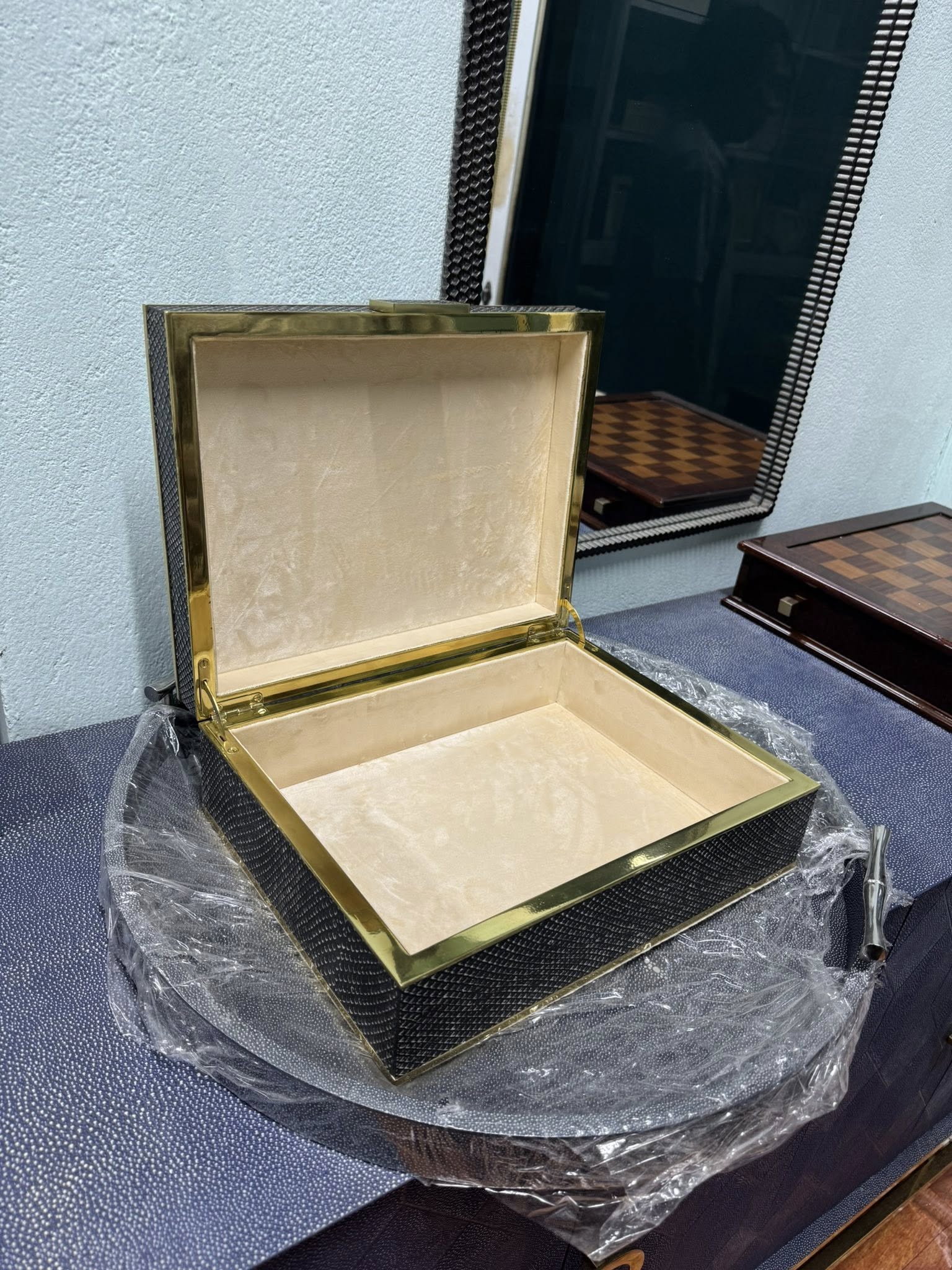 Hộp đựng trang sức bọc resin da trăn màu xám - Nội thất Minh Sang
