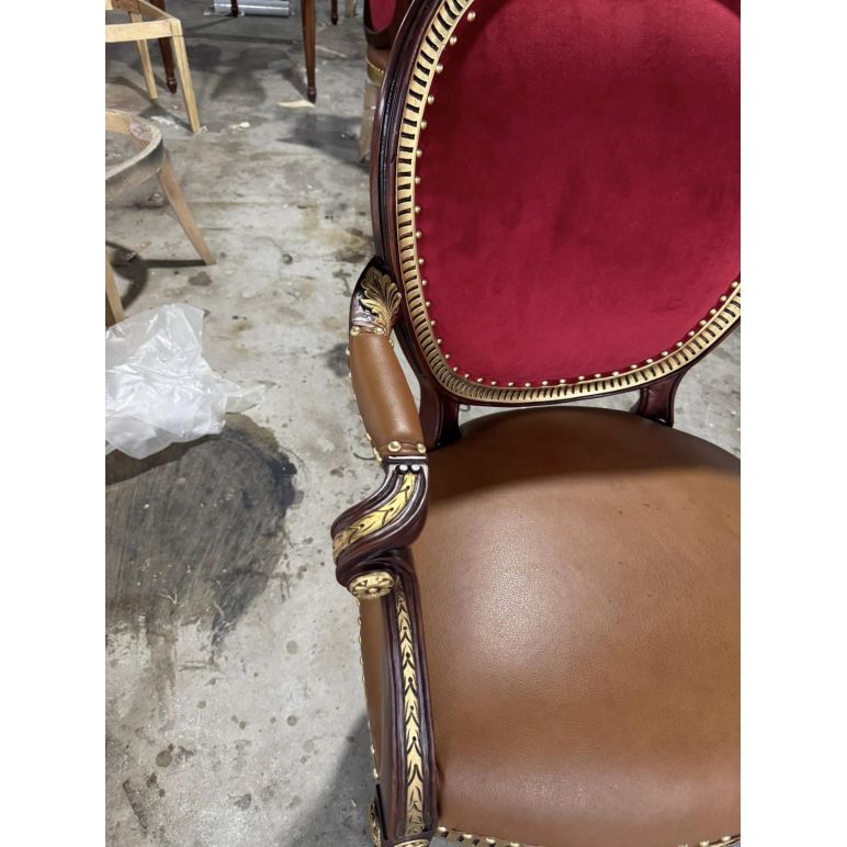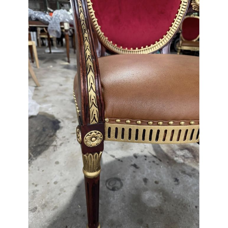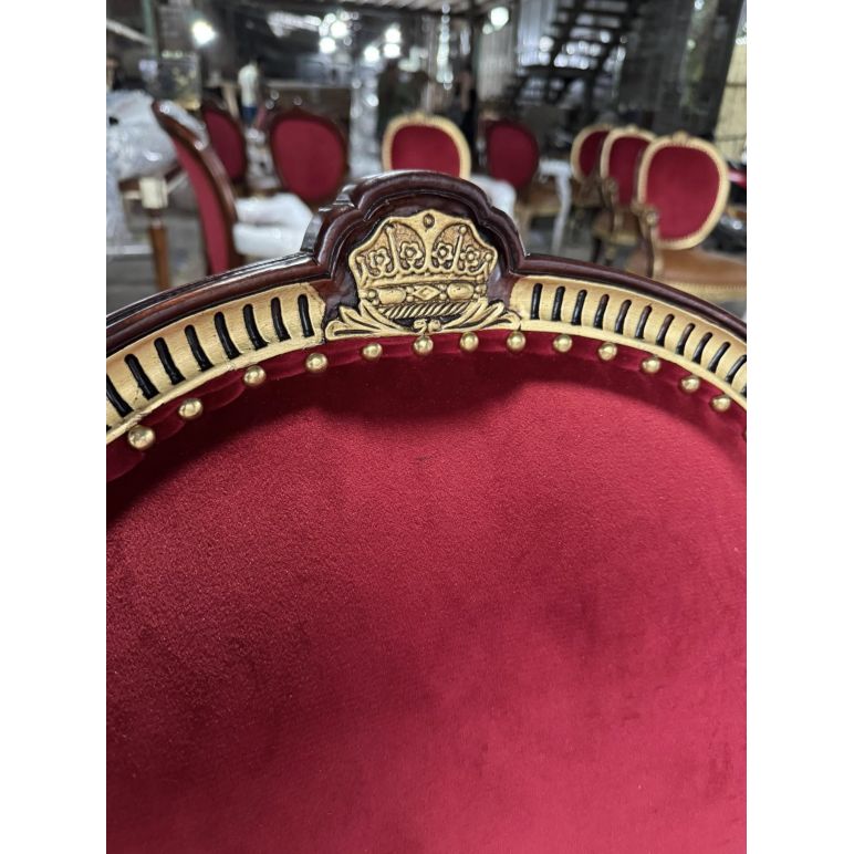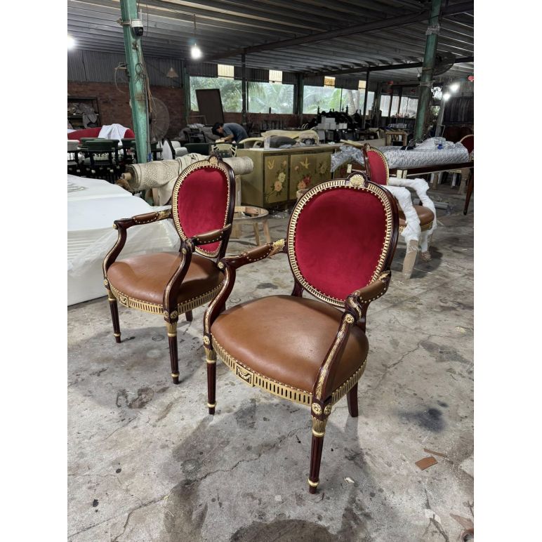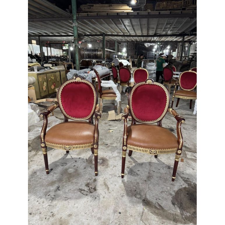 Phong cách Louis cổ điển nổi bật với đường cong tinh xảo, họa tiết chạm trổ uyển chuyển và vẻ đẹp quý phái, phù hợp với những không gian phòng ăn tân cổ điển hoặc cổ điển sang trọng. Ghế không chỉ tạo điểm nhấn nghệ thuật, mà còn hòa hợp với bàn ăn, đèn chùm và nội thất xung quanh, mang đến tổng thể hài hòa và sang trọng.