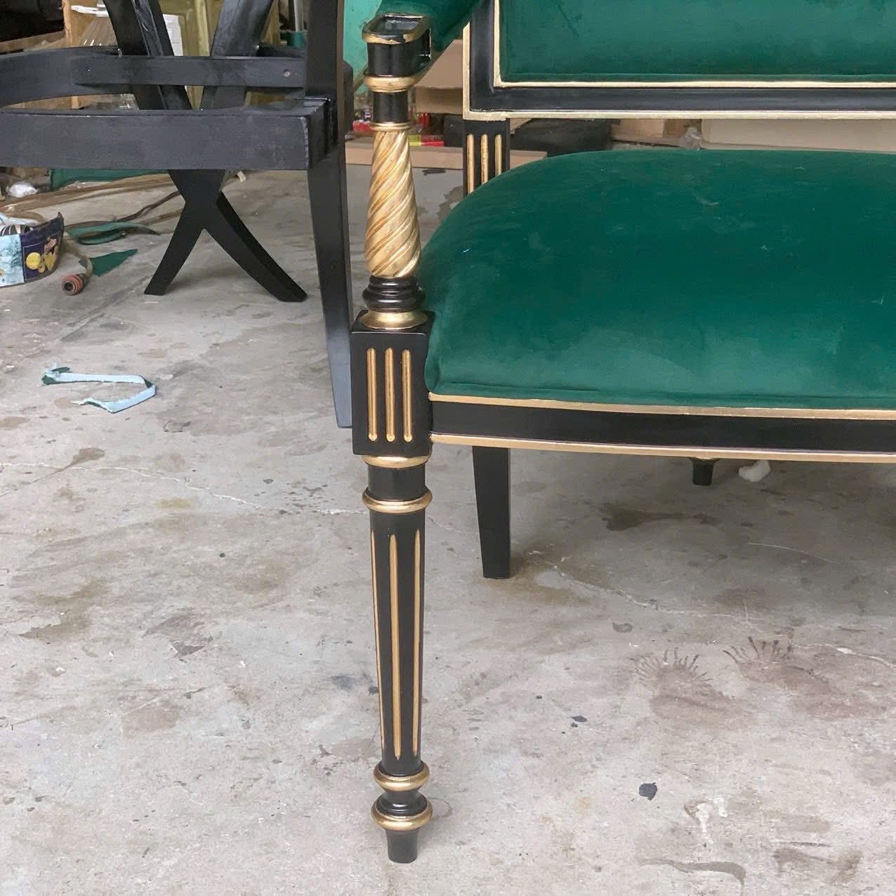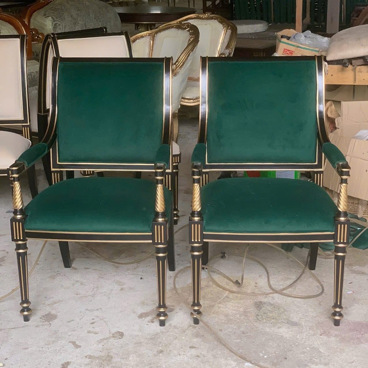 Ghế ăn tay xoắn bọc vải nhung xanh – Nội thất Minh Sang