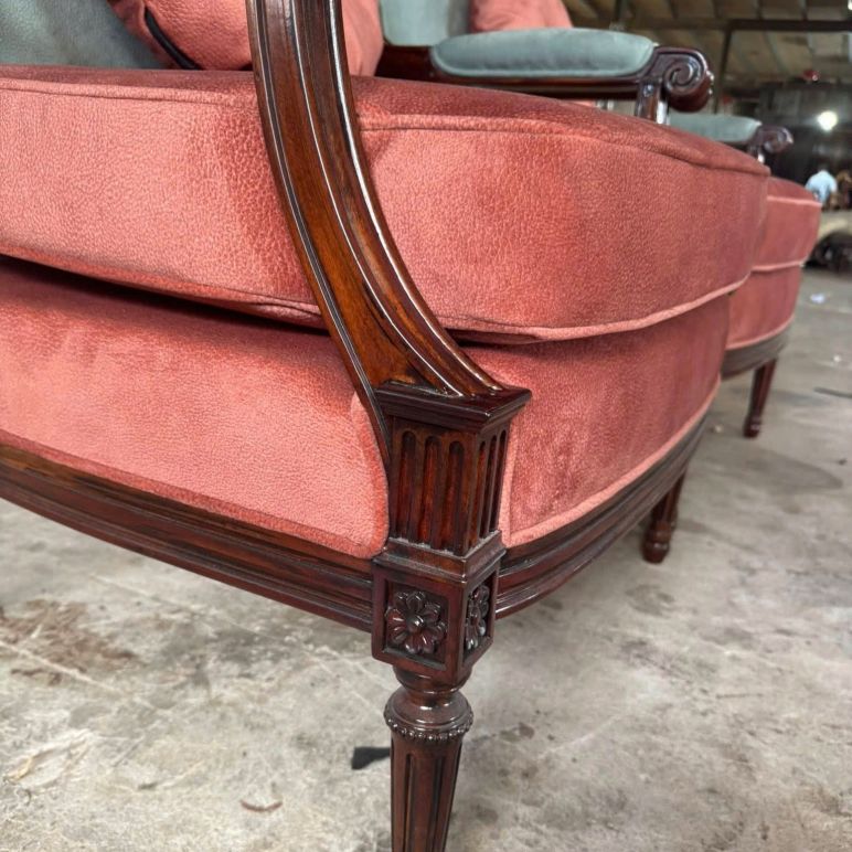 Mỗi chi tiết đều được Nội thất Minh Sang chăm chút cẩn thận – từ dáng khung gỗ uốn cong mềm mại, đến lớp nỉ nhung êm ái, cho đến gam màu phối tinh tế tạo nên một tổng thể đẳng cấp và sang trọng.