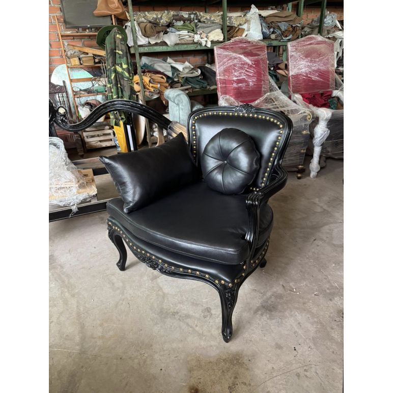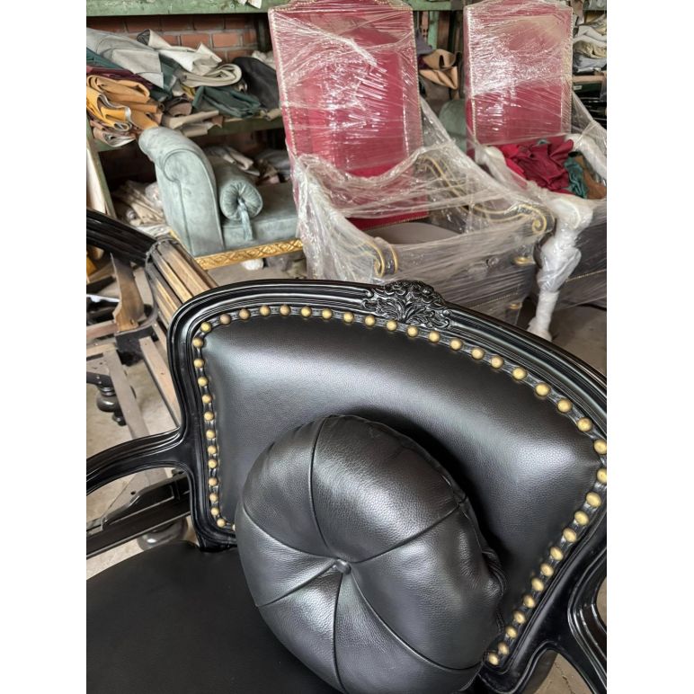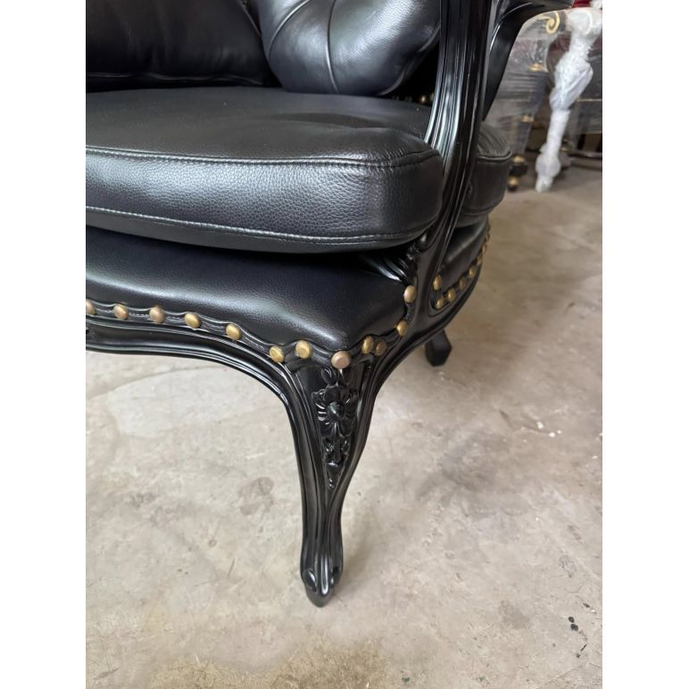 Ghế thái công đen tuyền bọc da bò và đóng đinh đồng vàng – Nội thất Minh Sang