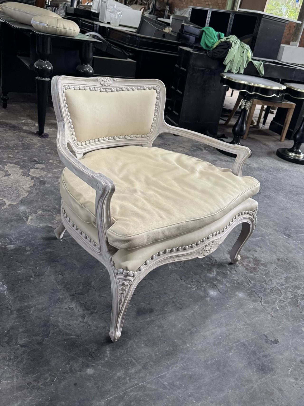 Với thiết kế cổ điển Châu Âu, chất liệu da bò cao cấp và màu trắng ngà tinh tế, ghế dễ dàng phối hợp với các món nội thất khác như bàn console, bàn trà, tủ hay ghế phụ, phù hợp với phong cách tân cổ điển, hiện đại hoặc đương đại sang trọng.