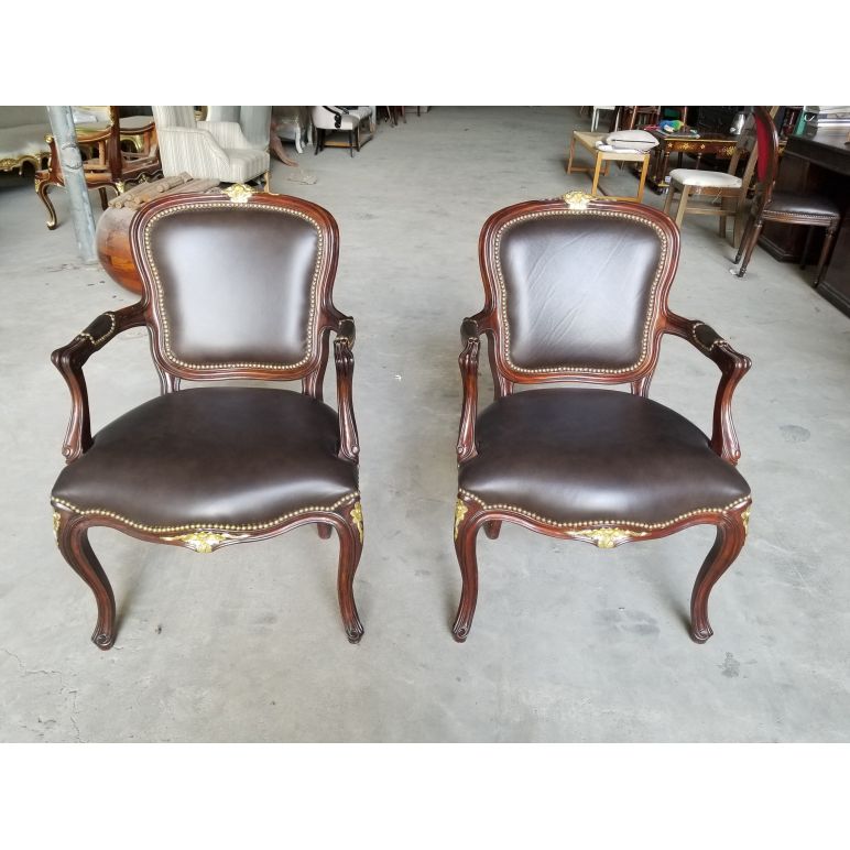 Ghế louis 15 dùng gỗ mahogany, bọc da bò và đóng đinh đồng.