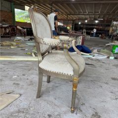 Ghế đơn tân cổ điển Châu Âu bọc nỉ hoa văn dát vàng sang trọng – Nội thất Minh Sang