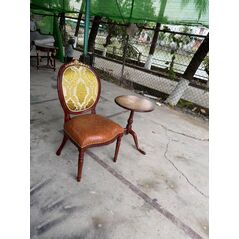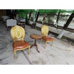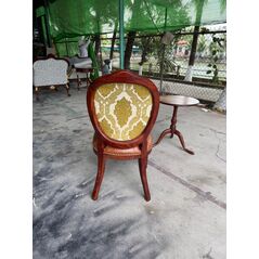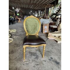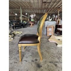 Ghế tựa lưng oval dát vàng bọc vải hoa văn nâu