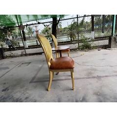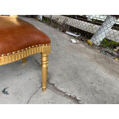 Ghế tựa lưng chạm trổ dát vàng bọc da nâu sẩm