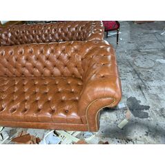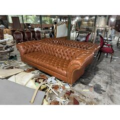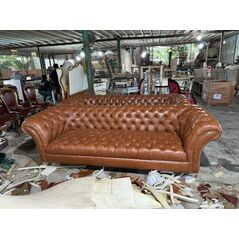 Sofa 3 chỗ dài 2m4 bọc da bò màu nâu và rút nút - Nội thất Minh Sang