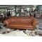 Sofa 3 chỗ dài 2m4 bọc da bò màu nâu và rút nút - Nội thất Minh Sang