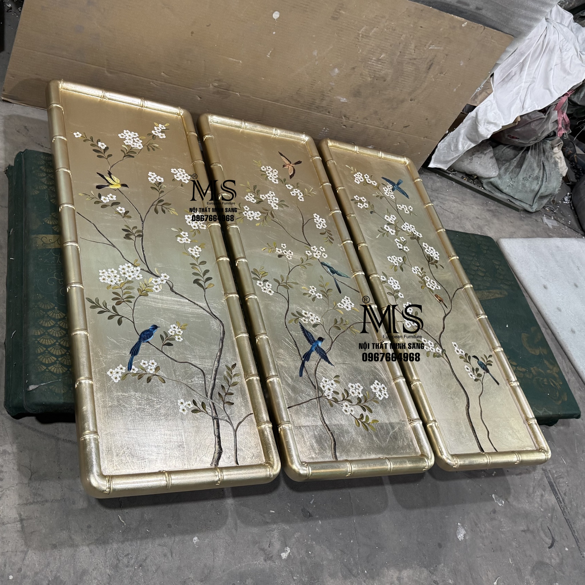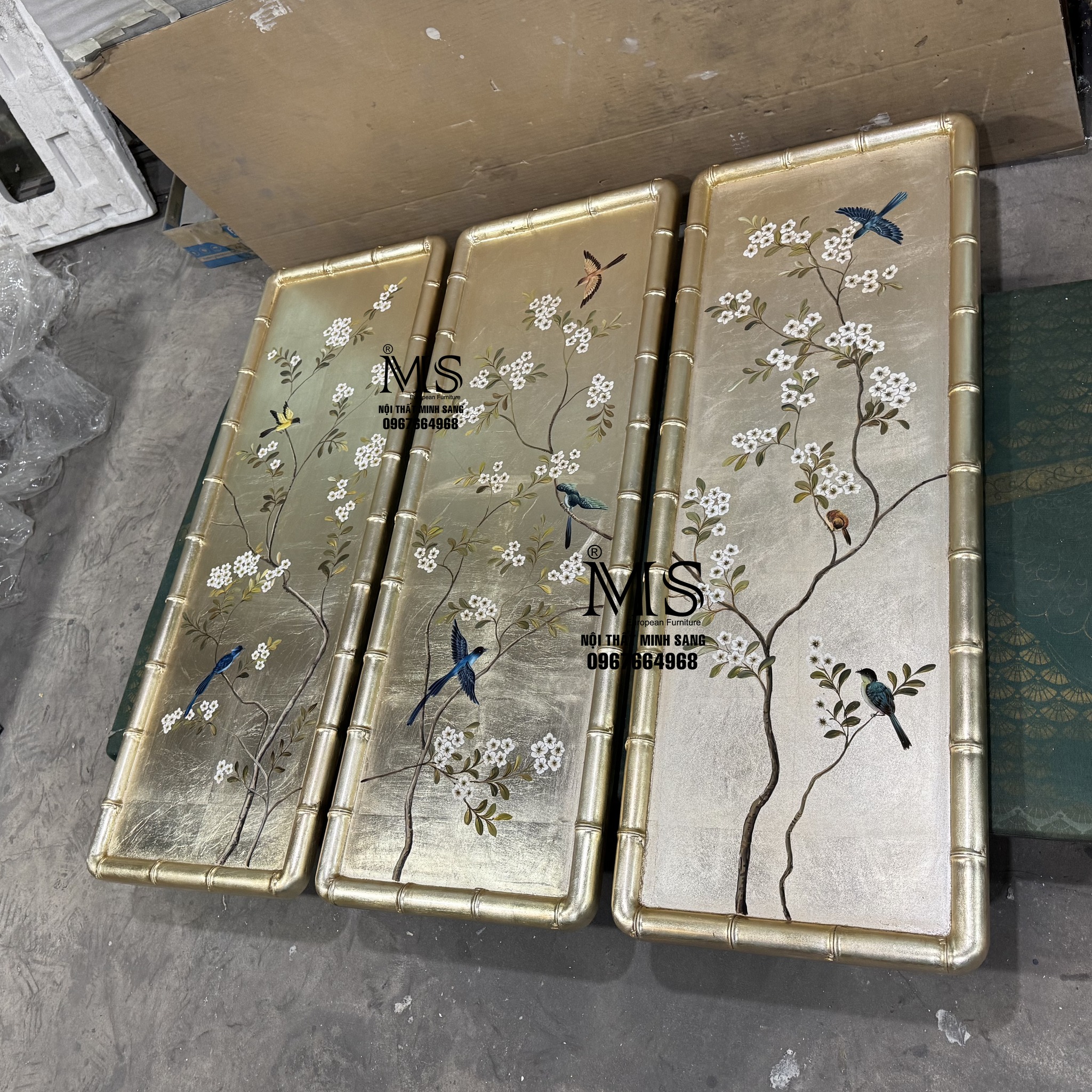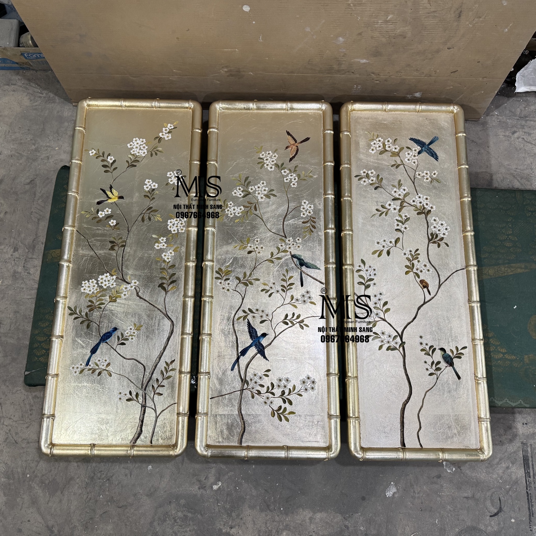 Tại Nội thất Minh Sang, mỗi sản phẩm tranh trang trí đều được lựa chọn và hoàn thiện với tiêu chí đề cao giá trị thẩm mỹ, sự tinh tế và độ bền lâu dài. Bộ 3 tấm tranh màu bạc champagne vẽ cảnh cây cối hoa lá và chim chuyền cành không chỉ là vật phẩm trang trí mà còn là điểm chạm cảm xúc, giúp không gian sống trở nên ấm áp, cân bằng và giàu chất nghệ thuật hơn.