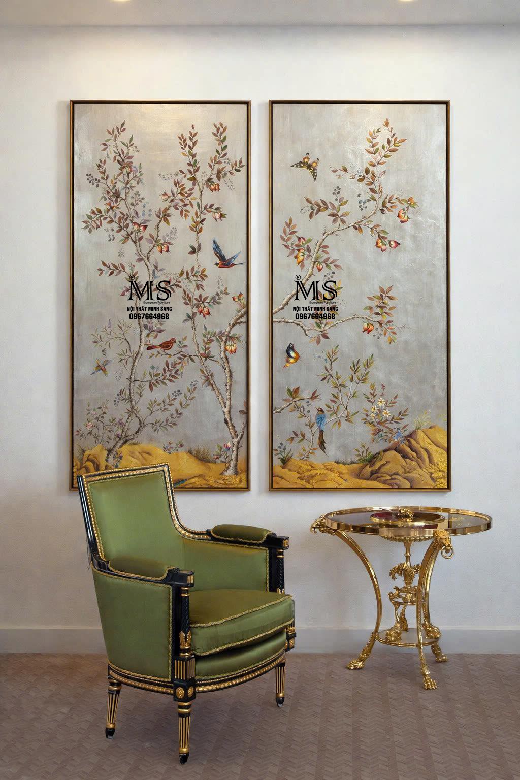 Trong xu hướng trang trí nội thất hiện nay, những sản phẩm mang tính nghệ thuật và có chiều sâu thẩm mỹ luôn được ưa chuộng. Không chỉ đơn thuần là vật trang trí, tranh treo tường còn góp phần tạo nên dấu ấn riêng cho không gian sống. Cặp tranh vẽ bằng sơn mài công nghiệp trên nền dát lá bạc cũ của Nội thất Minh Sang là lựa chọn hoàn hảo dành cho những ai yêu thích sự tinh tế, sang trọng nhưng vẫn mang nét hoài cổ độc đáo.