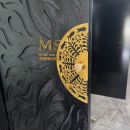 Sự kết hợp giữa sắc đen huyền bí và ánh vàng sang trọng tạo nên vẻ đẹp quyền quý, giúp chiếc tủ rượu trở thành điểm nhấn nổi bật trong phòng khách, phòng ăn hay không gian trưng bày cao cấp.