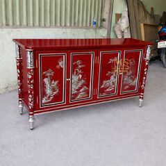 Tủ chinoiserie sơn son thếp bạc - Nội thất Minh Sang
