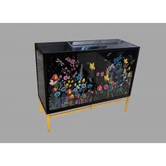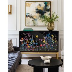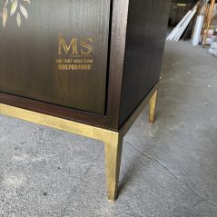 Tủ đen vẽ hoa trên nền chi tiết dát bạc
