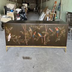 Tủ vẽ chim vẹt nền nâu đen - Nội thất Minh Sang