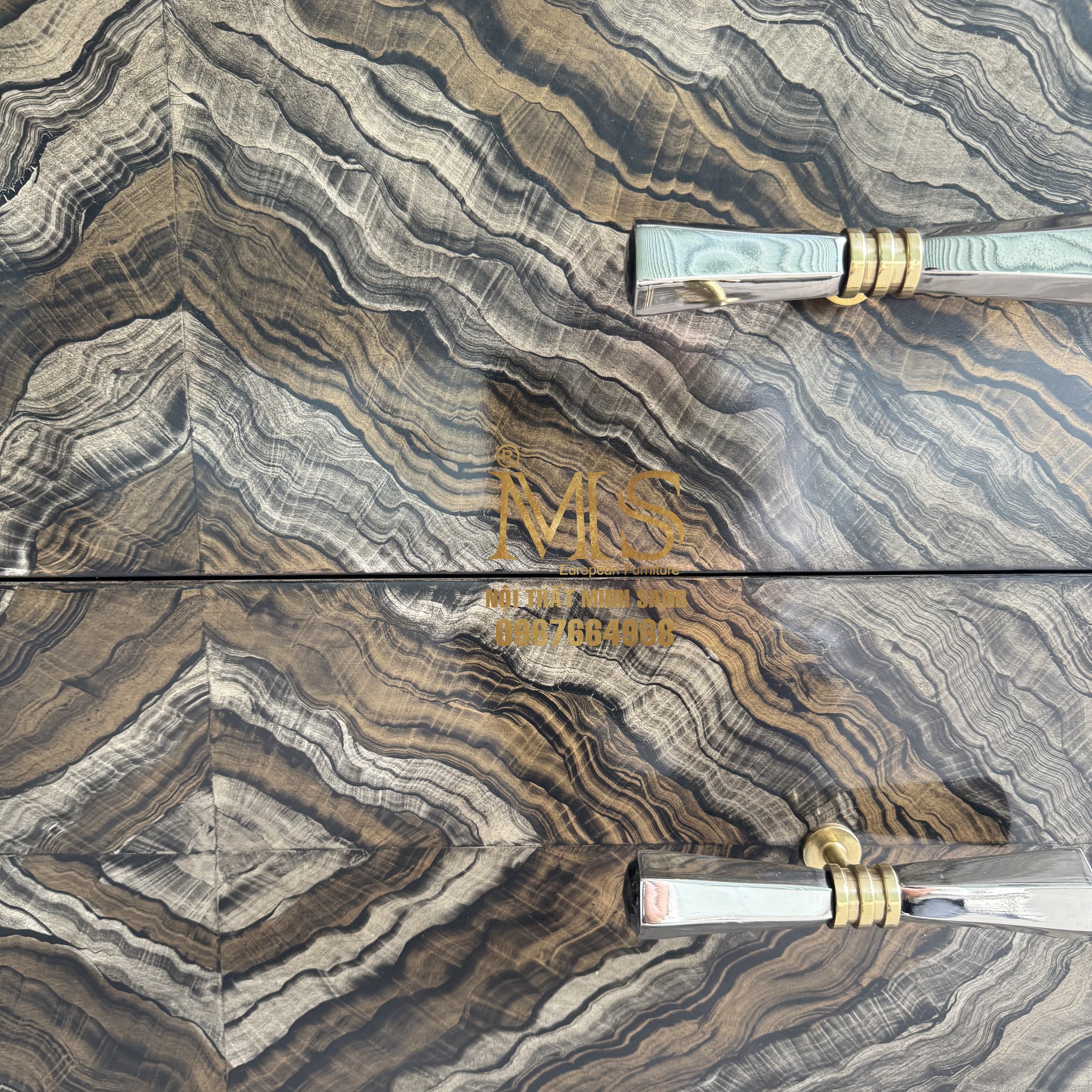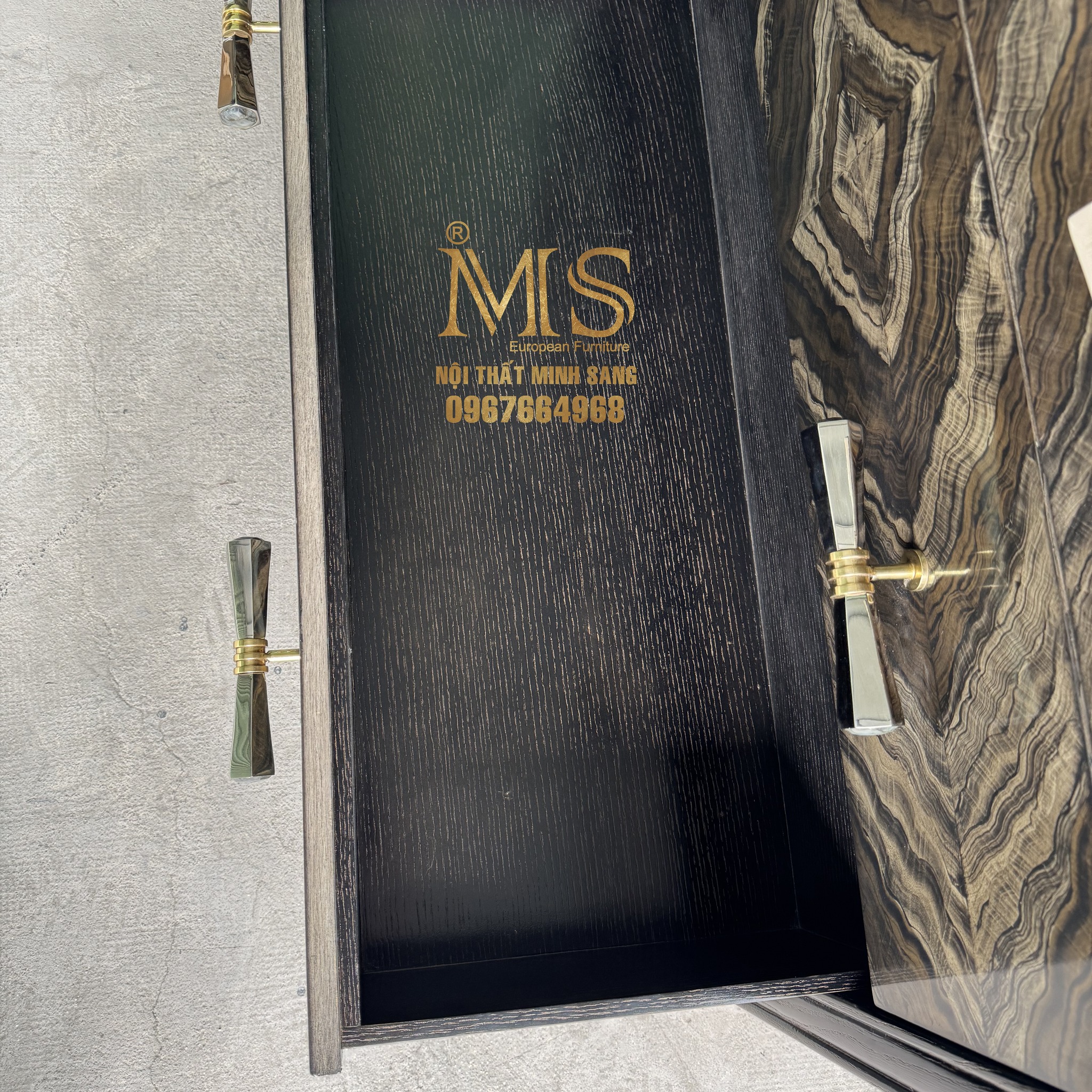 Không chỉ chú trọng đến chất lượng, Nội thất Minh Sang còn đặc biệt quan tâm đến tính thẩm mỹ của sản phẩm. Các chi tiết được gia công tỉ mỉ, đường nét gọn gàng, mang đến vẻ đẹp thanh lịch và tinh tế. Tay nắm được thiết kế vừa vặn, chắc chắn, tạo điểm nhấn nhẹ nhàng mà không làm mất đi sự hài hòa tổng thể.