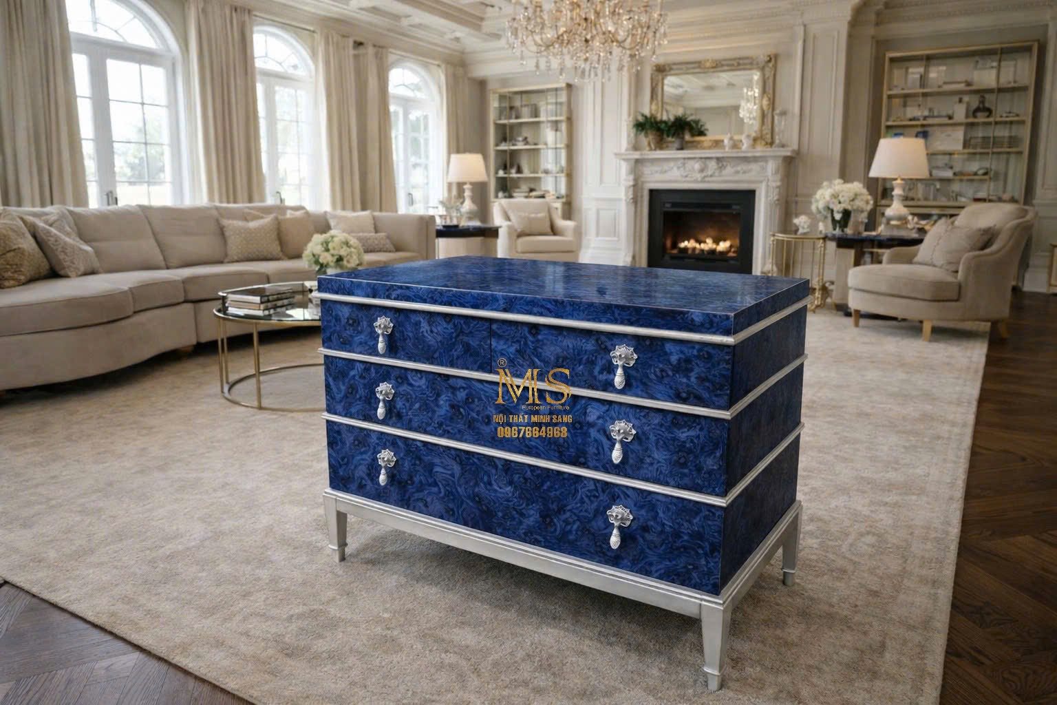 Tủ 4 ngăn kéo veneer xanh cao cấp – Nội thất Minh Sang