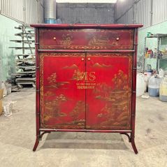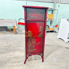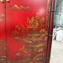 Chiếc tủ vẽ 04 mặt tranh thủy mạc trên nền đỏ