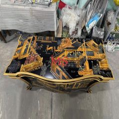 Chinoiserie tủ sơn đen dát vàng và vẽ