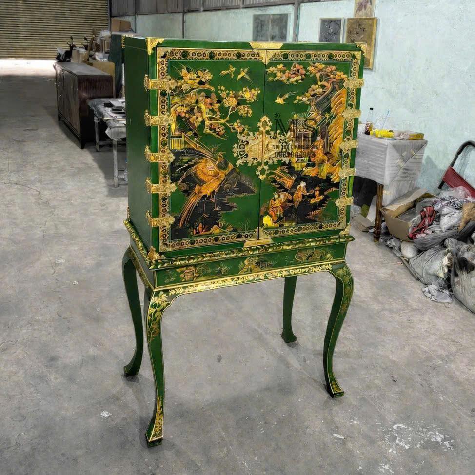 Tủ sơn mài xanh 2 cánh đắp nổi – Nội thất Minh Sang